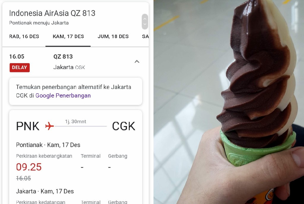 Aku ikut ICPC Regional Jakarta dan asyiknya bisa ke Depok yey.. Aku setim sama Kak Igo sama Kak Rey. Kami naik pesawat, terus intinya pengen cepet-cepetan lah sampai duluan. Aku sama Novaryo akhirnya berangkat dari Pontianak, tapi akhirnya flight โ๏ธ kami di-delay sampai besok paginya karena engine-nya ada accident kemasukan burung ๐. Aku udah beliin kue Ponti Bonti dan akhirnya harus ditunda. Kami akhirnya dikasi hotel semalam di Orchardz Gadjahmada Pontianak dari AirAsia, dan akhirnya terbang besok paginya ๐.