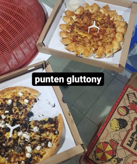 Ga cuma donat-donatan, aku juga sering pesan makanan gofood di luar. Biasanya nasi kuning, nasi ayam telor asin, pernah juga pesen pizza ๐.